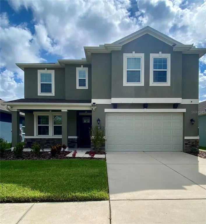 Tampa Palms Spacious Family Home. Discover this stunning 5-bedroom, 3-bathroom home where modern living meets peaceful tranquility. Nestled in a prime Tampa Palms location, this residence offers a serene, private lifestyle with captivating pond views that you can enjoy from your backyard and while cooking in the kitchen. The main level is thoughtfully designed for today's dynamic lifestyle. Enjoy a versatile office/flex space featuring custom wood shelving—perfect for remote work, a hobby room, or a quiet reading nook. A private first-floor bedroom and full bath is an ideal setup for hosting guests or for multi-generational living. Upstairs, the home continues to impress with four additional spacious bedrooms, a dedicated laundry room for convenience, and abundant storage space throughout. The two-car garage provides plenty of room for vehicles and tools. This is more than a home; it's a peaceful family oasis you won't want to miss. Lawn Maintenance Included in Rent.