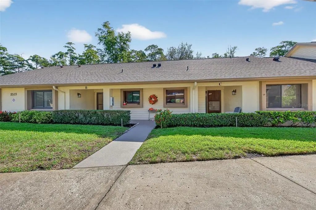 Under contract-accepting backup offers. UNBEATABLE VALUE - Price reduced on this Beautiful, Lake Front, 2-Bedroom, 2-Bath Villa in the highly desired community of Village on the Green. Purchase with peace of mind! This property has an elevation of over 70'. It is in Flood Zone X and a Non Evacuation Zone. The reserves are fully funded! As a single-story building, it is exempt from Milestone Inspections, impacting condos three stories and higher. Dive into paradise with this two-bedroom, two-bath villa, perfectly nestled on the community lake in a vibrant 55+ community! You are going to love the serene lake view from your Florida room. The living area is large and includes a dining area adjacent to the living room. From the living room you have a large, secluded Florida room, perfect for your morning coffee, afternoon reading and evening refreshments. The primary suite is large with a walk in closet and en-suite bathroom with a walk in shower. The guest bedroom can also be used as an office or den. The villa has it's own laundry room inside the unit with shelves and room for storage. The perks don't stop there! This community is a lifestyle, not just a location. Enjoy a sparkling pool, a clubhouse with a fitness center, library, card room and banquet room. Outside you will find the shuffleboard courts and community picnic area complete with gas grills for residents use. The clubhouse offers card playing and board game groups of all kinds as well as a shuffleboard group that meets weekly in the fall through the spring. Additionally there are regular community events throughout the year. Your condo fees include, water, sewer, trash, cable tv and internet in addition to all of the exterior maintenance and common area maintenance. And the best part, you're just minutes away from the heart of vibrant Downtown Dunedin, with its charming shops, delectable dining, and lively entertainment. Plus, you’re close to Honeymoon Island, Caladesi Island and more of Florida’s best beaches and fun activities. This villa offers you peace of mind and fun in the sunshine. Don’t just dream of the Florida lifestyle – live it!